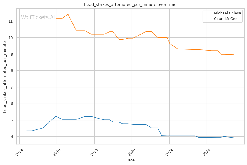 | Head Strikes Attempted per Minute | 3.912 | 8.931 | 6.605 | |