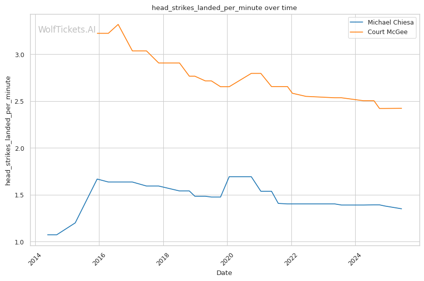 | Head Strikes Landed per Minute | 1.351 | 2.424 | 2.605 | |