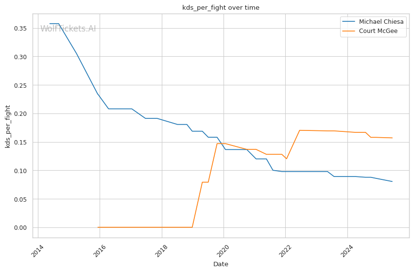 Late rounds: If the fight reaches the championship rounds, Chiesa's more efficient grappling should create a significant cardio advantage. McGee's high-output style requires considerable energy expenditure, and Chiesa's ability to control positions will likely drain McGee's gas tank, making his takedown defense increasingly vulnerable.