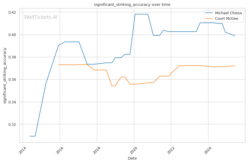 | Significant Striking Accuracy | 39.88% | 37.27% | 44.51% | |