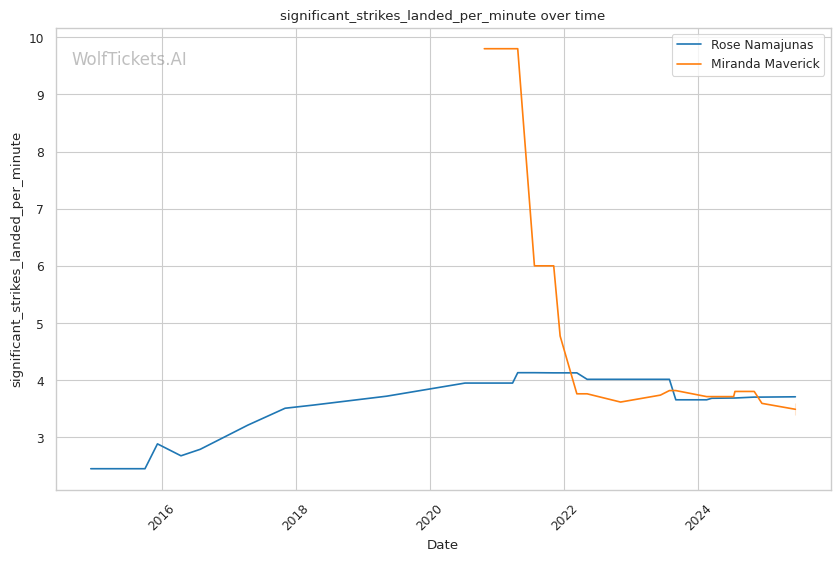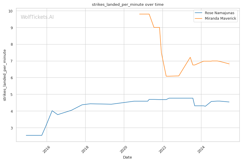 | Stat | Rose Namajunas | Miranda Maverick | Weight Class Average | |