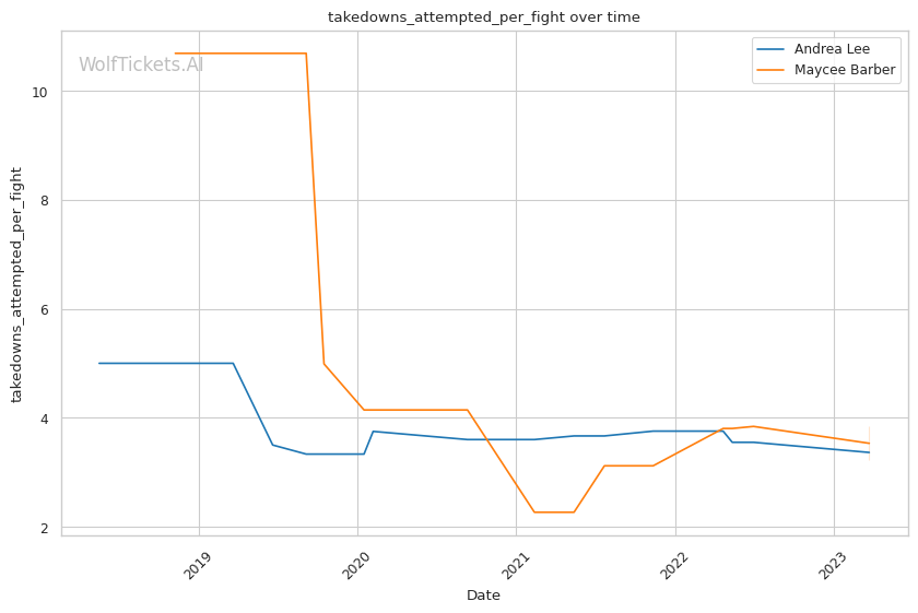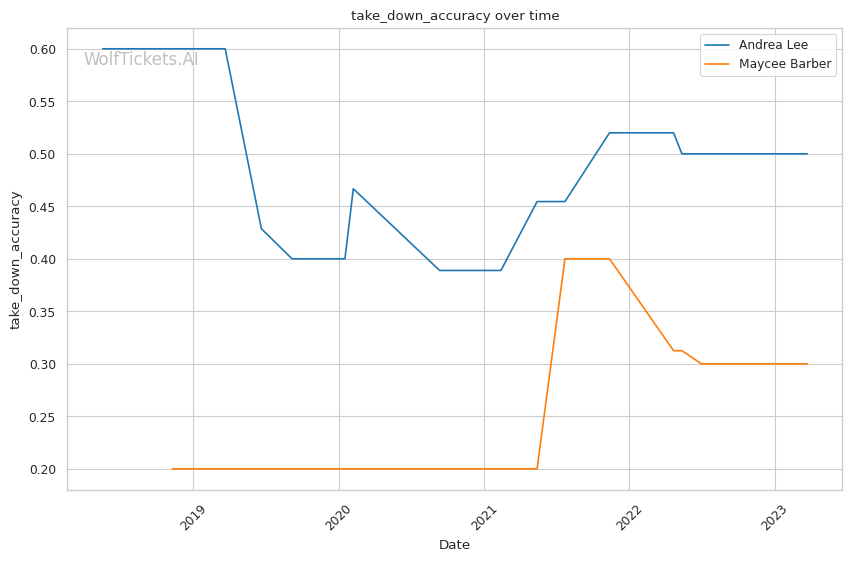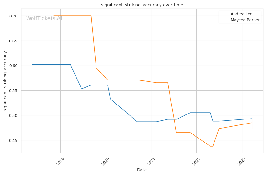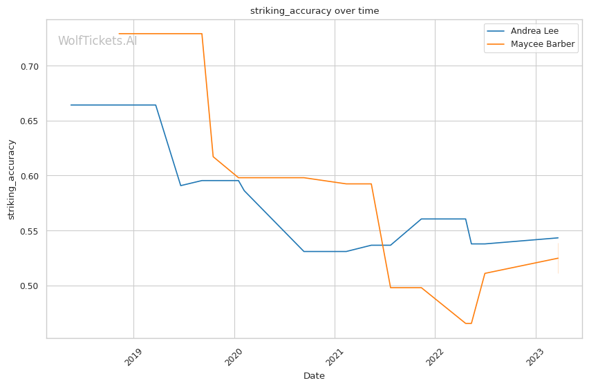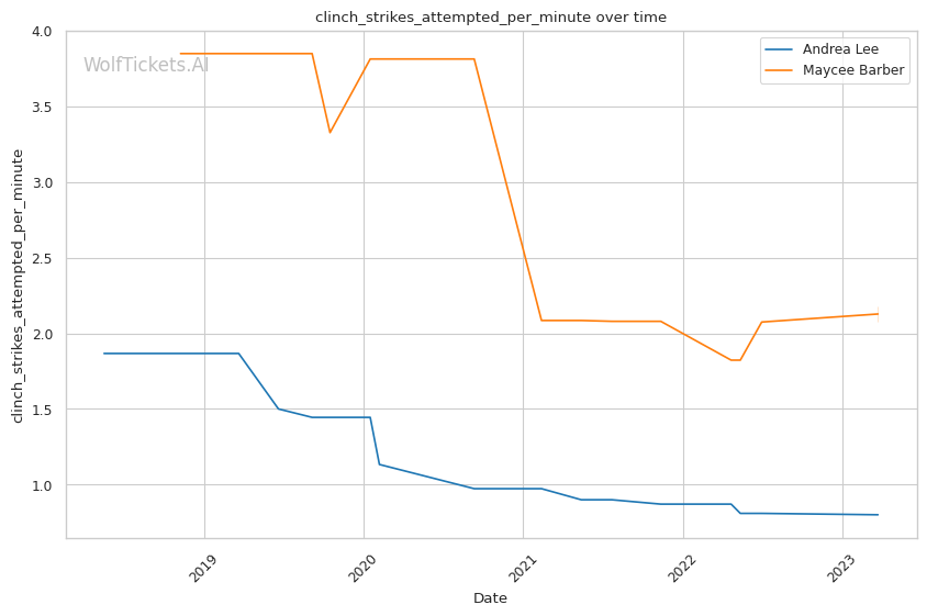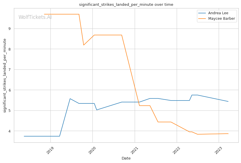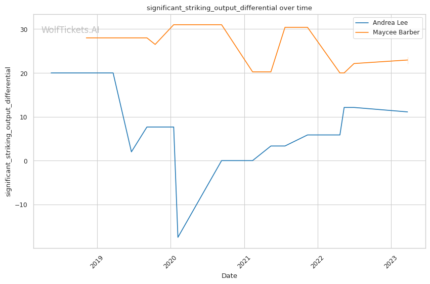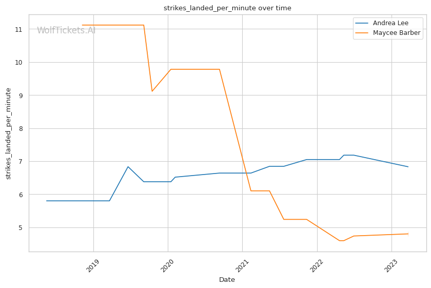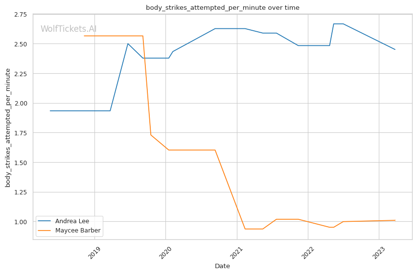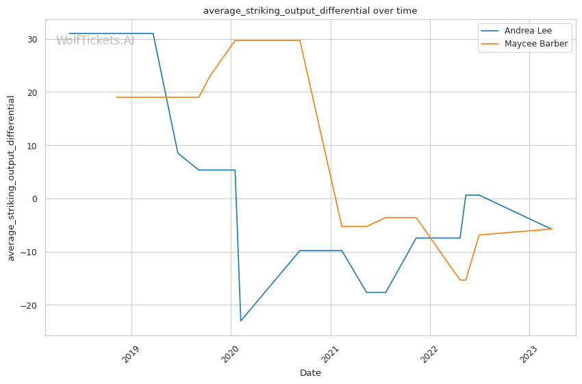 | Stat | Andrea Lee | Maycee Barber | Weight Class Average | |