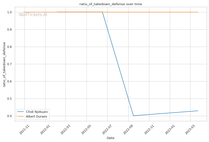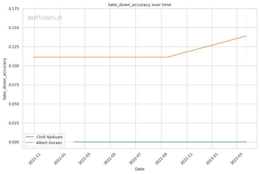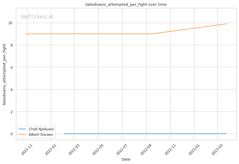 | Takedowns Attempted per Fight | 0.000 | 10.800 | 4.042 | |