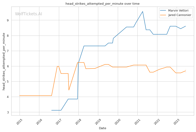 | Head Strikes Attempted per Minute | 8.606 | 5.820 | 6.293 | |