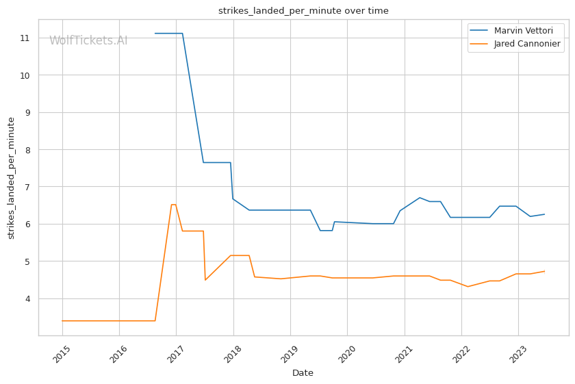 | Head Strikes Landed per Minute | 3.405 | 2.380 | 2.787 | |